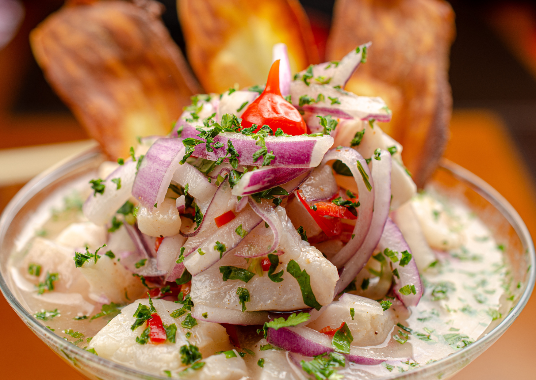 - Serve in martini glass and garnish with corn tortilla chips.