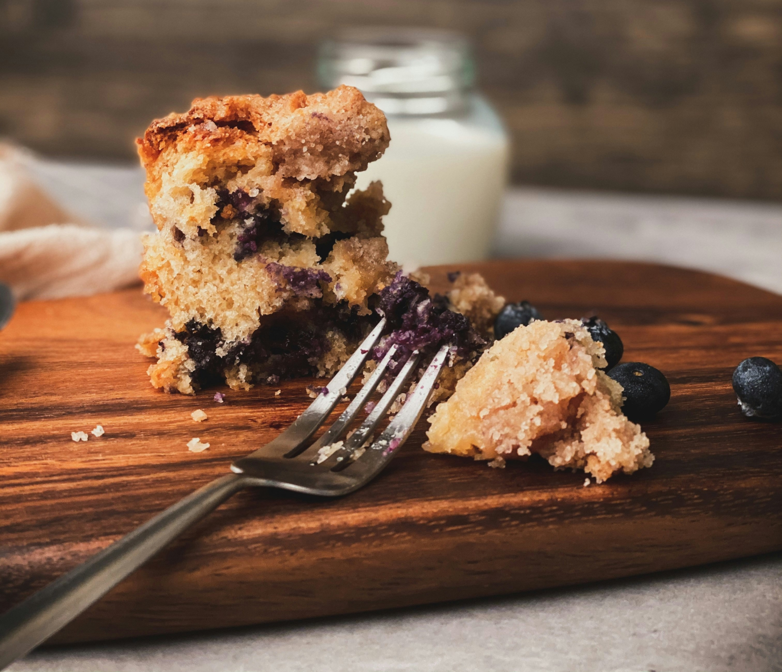 A soft, buttery blueberry-almond breakfast cake topped with a sweet almond crust. It is tender, lightly sweet, and full of juicy blueberries, making it perfect for brunch or dessert.