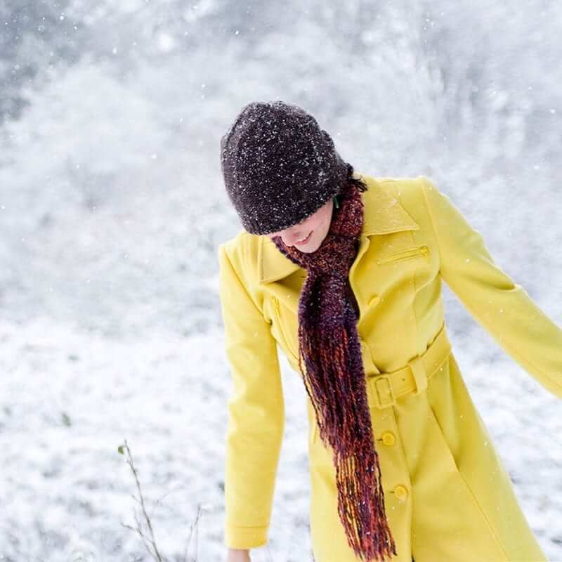 7. Woman in a yellow jacket walking through snowCold air: With cold, winter air, the humidity drops which makes the air drier. Indoor and car heaters also dry skin out. Skin loses water through evaporation. Dry, itchy skin may lead to cracks on the feet, fingers, elbows and knees. This could lead to atopic dermatitis or irritated skin. People begin to itch, then scratch and the “winter itch cycle” begins. “The winter itch cycle” occurs more in the elderly and in those with diabetes and can result in a chronic situation. The skin eventually thickens and darkens. Scratching may lead to open skin areas, bleeding, irritation and an infection. Infections are problems for people with diabetes as they will raise blood sugars.