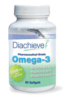 Pompano Beach, FL – February 21, 2012 – Diachieve has launched the latest item in their product line that is designed to benefit people with diabetes. Their Pharmaceutical-Grade Omega-3 supplement offers 850mg of Omega-3 fish oil with the highest concentration of EPA and DHA available.