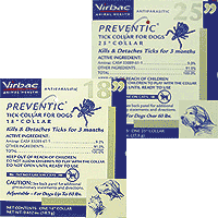 Tick prevention has long been a frustration for vets and pet owners alike. For many years we only had the permethrin / pyrethrin type products. Then in the 90s came the Frontline and Advantix products. These products are great for fleas, but not completely effective against ticks. Unfortunately, the tick effects of Frontline and Advantix only last about a month. I live in South Florida – Tick Country. Even with the Frontline and Advantix products, many clients still find ticks on their pets. There are now several tick collars on the market that work better than the old time tick collars. Preventic is the collar I suggest most often when Frontline or Advantix isn’t doing the job. Preventic is a 9% amitraz collar that is effective against ticks for up to 3 months.