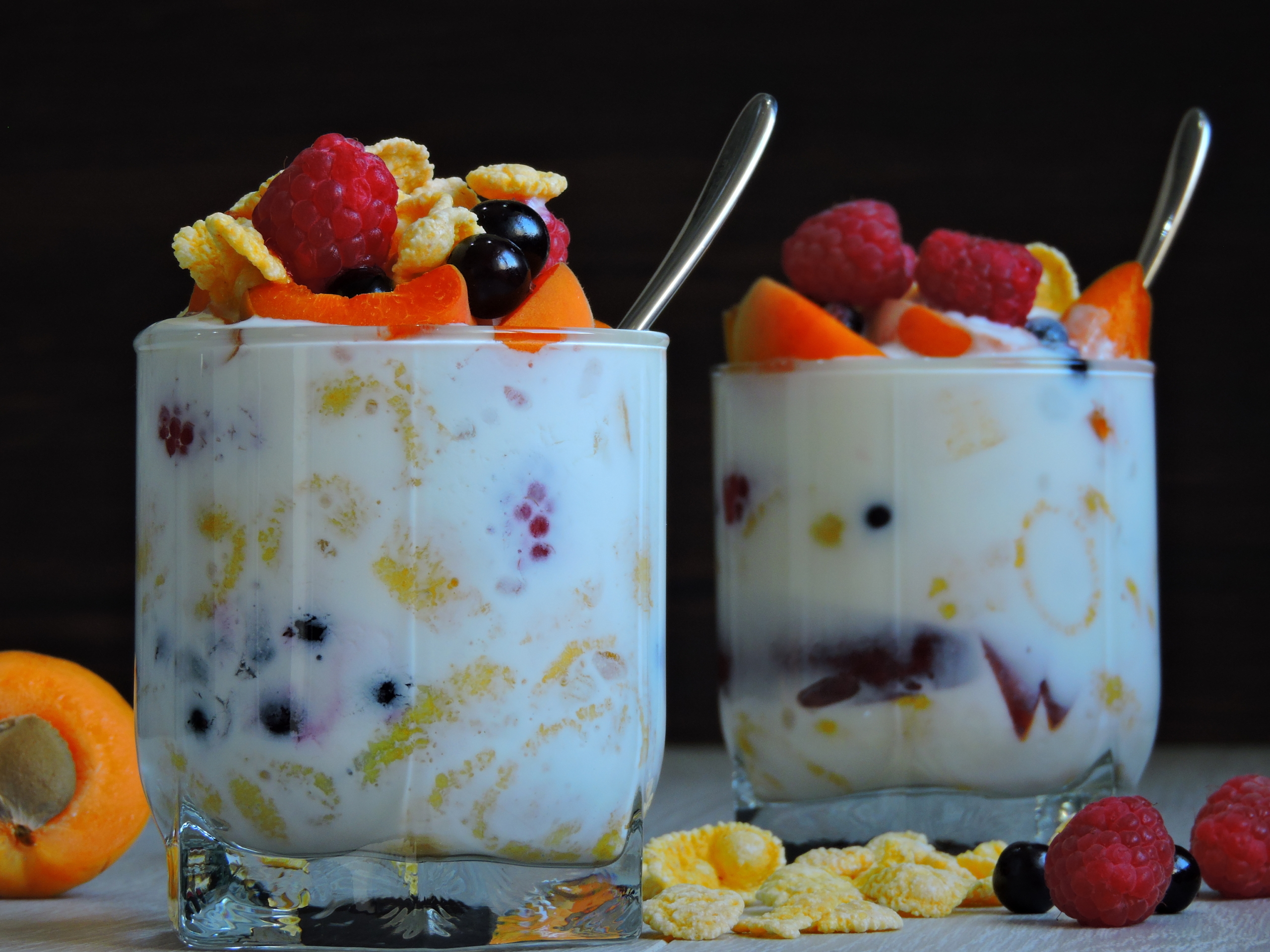 - In a clear straight-sided bowl, layer fruits.