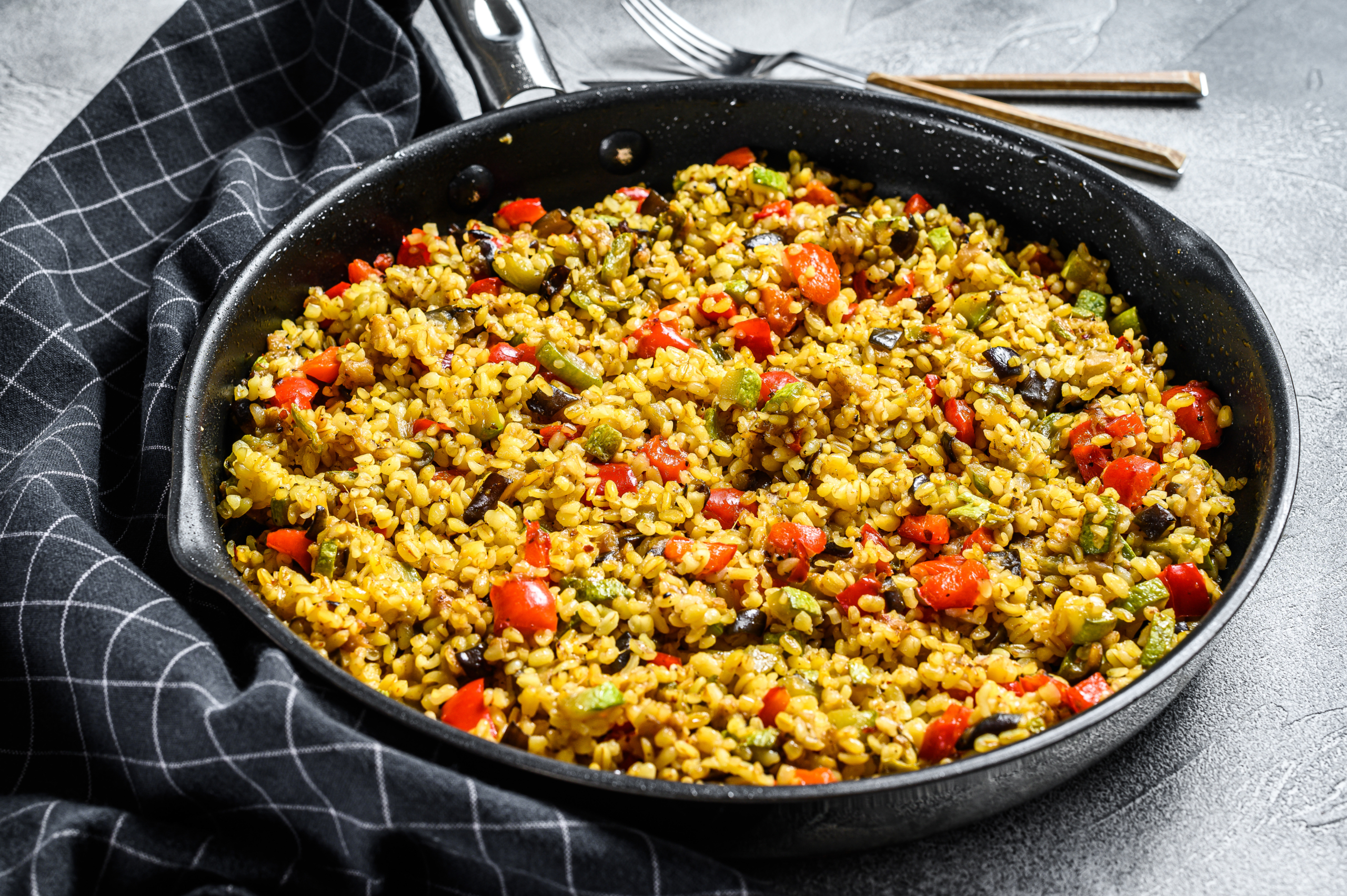 - Heat oil in medium skillet. Cook and stir bell pepper and onions 2 to 3 minutes. Add curry powder; stir 30 seconds.