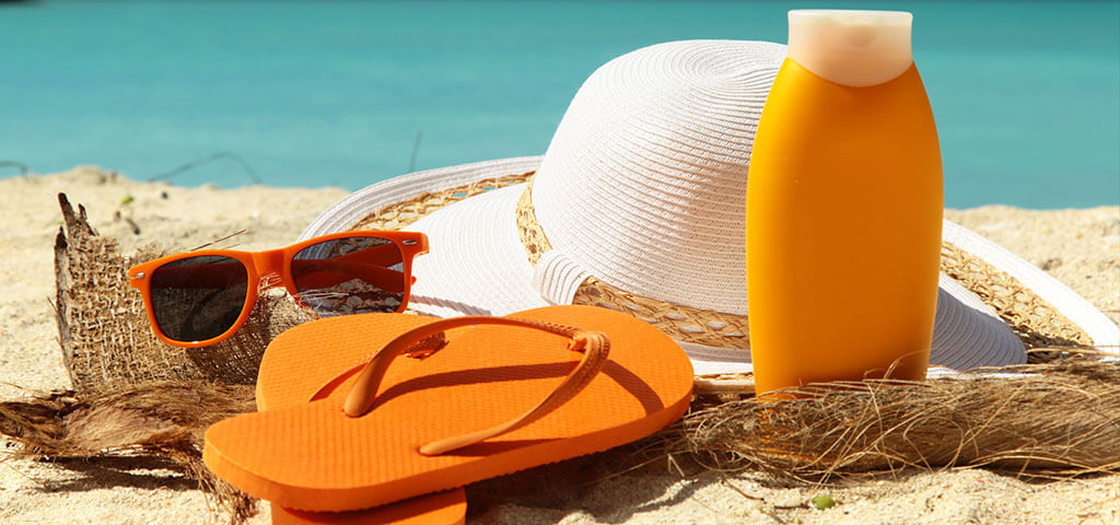 - Make sure to protect your skin when you go out in the summer sun. Light-colored clothing keeps you cooler, especially when it fits loosely. Put on sunscreen with an SPF 30+, such as Vanicream with broad-spectrum UVA and UVB protection. It is also free of irritants such as fragrances and dyes. Remember to put sunscreen on areas such as the tops of your feet and the edges of your ears. Look for clothing that has sunscreen protection built in. Apply a lip balm with sunscreen, such as Chapstick with SPF 30.