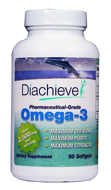 ADW Diabetes’s Diachieve pharmaceutical-grade Omega-3 is the purest form of Omega-3 available with the highest content of Omega-3 you will find. Each Diachieve Omega-3 soft gel supplies more than 850 mg of Omega-3 per day with 325 mg of DHA. We recommend you take 3 soft gels per day for optimum health.