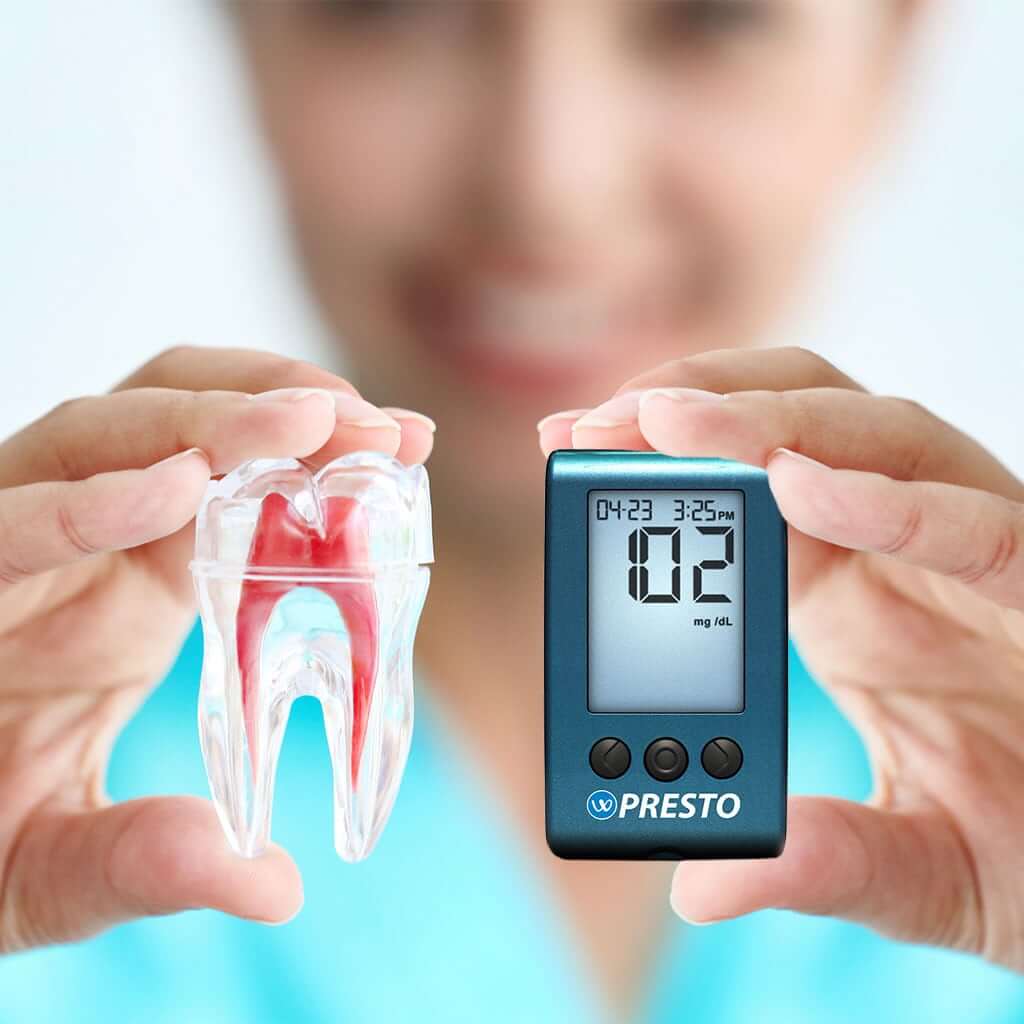 Great, you’re thinking. So what can I do? Naturally, proper dental care is a must in order to keep your teeth and gums healthy. But surprisingly, controlling your blood sugar levels is also important in preventing periodontal disease[3]. People who maintain good control of their blood sugar levels are less likely to develop gum disease. If they do develop periodontal disease, it is generally less severe and with less tooth loss than in people who have poor control over their blood sugar levels. So, as with many diabetes-related conditions, better blood sugar levels mean better overall health.