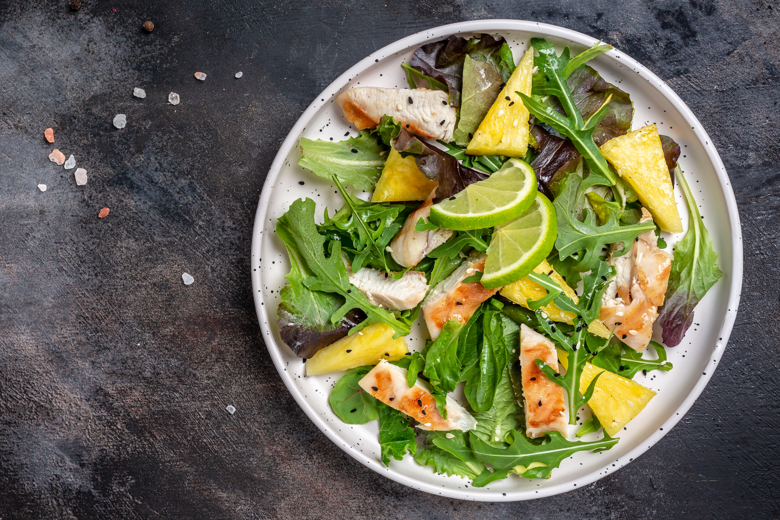 - Add in the chicken, toss the salad again, and once it’s all mixed together, serve immediately.