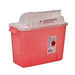 A biohazard sharps container is a hard plastic container specially designed to allow the safe disposal of syringes and needles, as well as other sharp medical instruments. Sharps containers within the U.S. are usually red and marked with the universal biohazard symbol for ease of recognition.
