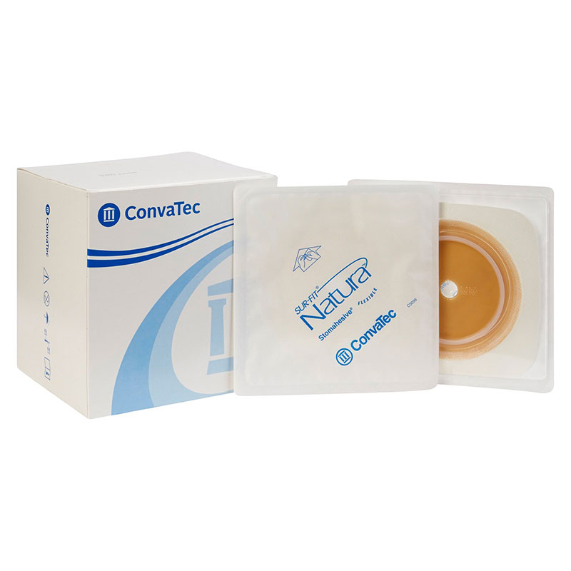 ConvaTec Sur-Fit Natura Stomahesive Flexible Wafer - 70 mm (2 3/4") Flange White Collar Overall Dimension 5" X 5" - sold by box of 10 each