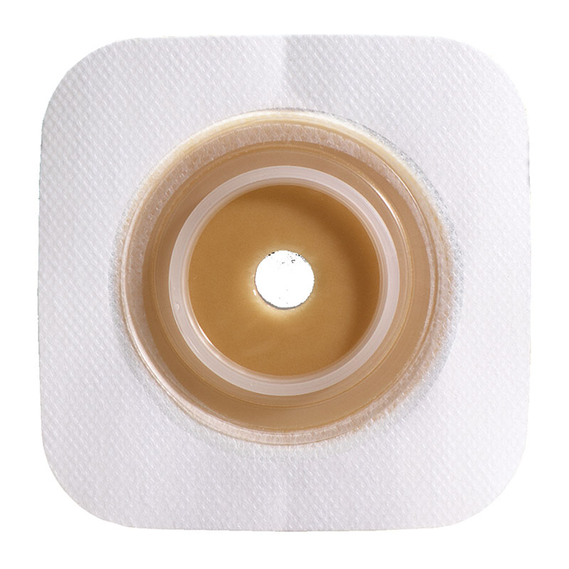 ConvaTec Sur-Fit Natura Stomahesive Flexible Wafer with Precut Opening with 45 mm (1 3/4") Flange - 28 mm (1 1/8") Stoma Tan Collar. Overall Dimension 4" X 4" - sold by box of 10