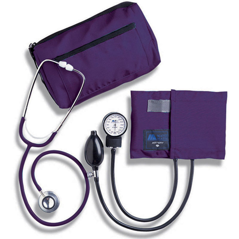 • MatchMates aneroid sphygmomanometer with calibrated nylon cuff and dual head stethoscope