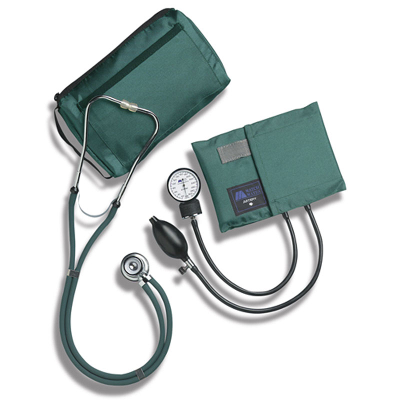 • MatchMates aneroid sphygmomanometer with calibrated nylon cuff and 31" Sprague rappaport-type stethoscope