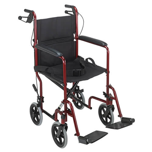 Mabis DMI Folding Steel Transport Chair With Hand Brakes Burgundy.