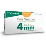 A new addition to the SureComfort line, the 32G is the thinnest gauge available for ultimate comfort. 100 Single use short pen needles per box, case of 12.