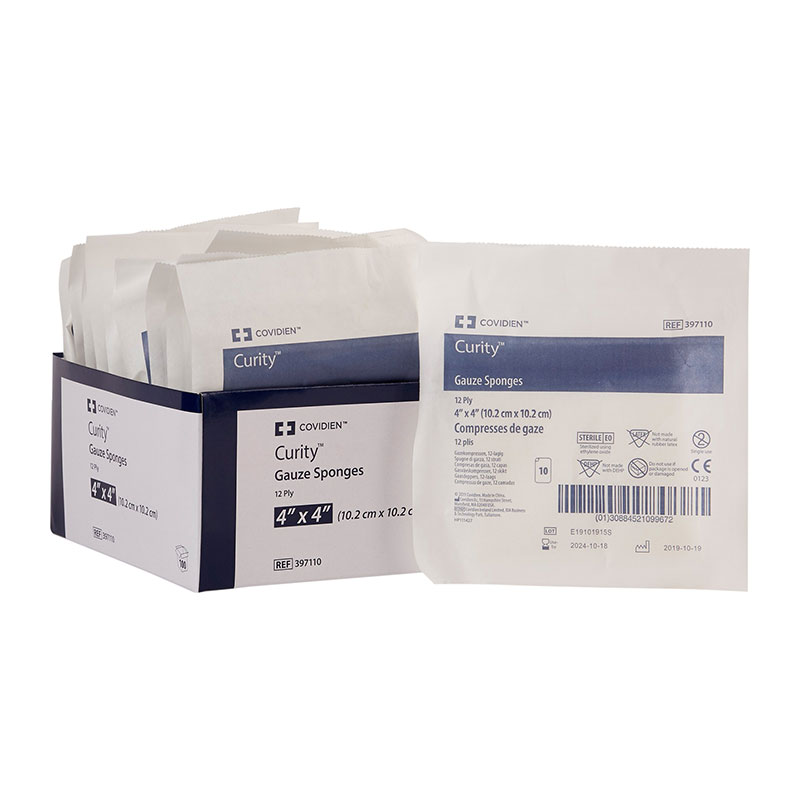 The Curity 12-Ply Sterile Gauze Sponge by Covidien is available in a square size of 4x4. This gauze exceeds the requirements of USP Type VII gauze. It ensures bleaching control, which keeps the wound dry and bacteria-free.