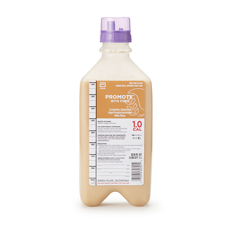 The Abbott Promote 1 Cal High Protein Liquid with Fiber 1 Liter Case of 32 is a complete, balanced, very-high-protein formula for adult patients who need a higher proportion of calories from protein. It is ideal for patients with low caloric and/or wound-healing needs and patients at risk for protein-energy malnutrition or pressure ulcers. Promote is available in formulations with and without fiber for oral and tube-fed patients. PROMOTE WITH FIBER is a complete, balanced, very-high-protein, and fiber-fortified formula for patients who need a higher proportion of calories from protein. It is ideal for patients with low caloric and/or wound-healing needs and those at risk for protein-energy malnutrition or pressure ulcers. Can be fed orally or by tube. For suplemental or sole-source nutrition. For use under medical supervision.