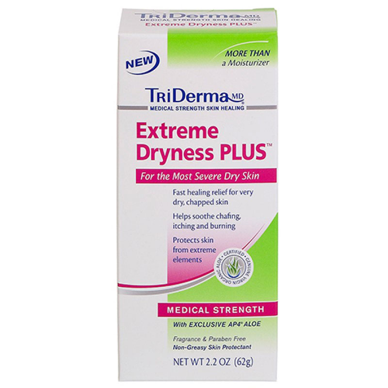 The Genuine Virgin Aloe TriDerma Extreme Dryness Plus Cream 2.2oz is more than a moisturizer. It delivers intense moisture to very dry, chapped, chafed or cracked skin. This unique formula contains clinically proven, medical strength ingredients to help lock in vital moisture and reinforce skin's natural protective barrier. It helps sooth itching or burning and helps keep skin protected from extreme elements. This concentrated mega-moisturizing cream helps repair extremely dry, damaged skin without being greasy. It quickly absorbs into your skin leaving it feeling silky soft. It provides natural skin protection against air conditioning, heaters or extreme outdoor conditions. Safe to use head to toe for soft, smooth and hydrated skin all day long.