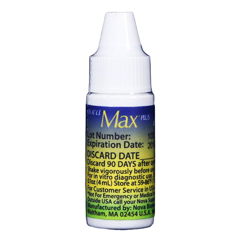 The Nova Max Control Solution by Nova Biomedical is made to be used with the Nova Max, BD Logic, and Paradigm Link Glucose Monitoring Systems. 0.1 oz (4 mL)