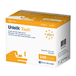 Owen Mumford Unistik Touch 23G 2mm - 200 Safety Lancets 3-Pack are designed to make blood sampling easy for the healthcare professional and more comfortable for the patient. Unistik Touch Features Comfort Zone Technology. When lancet is pressed against the skin, the 8 raised dots mask the pain sensation created by the needle. Comfort Zone Technology is based on the "Gate Theory" and works by sending a "comfort" message to the brain which interferes with the pain message produced during the lancing. Touch activation ensures that the device requires minimal training and can be used in three easy steps!