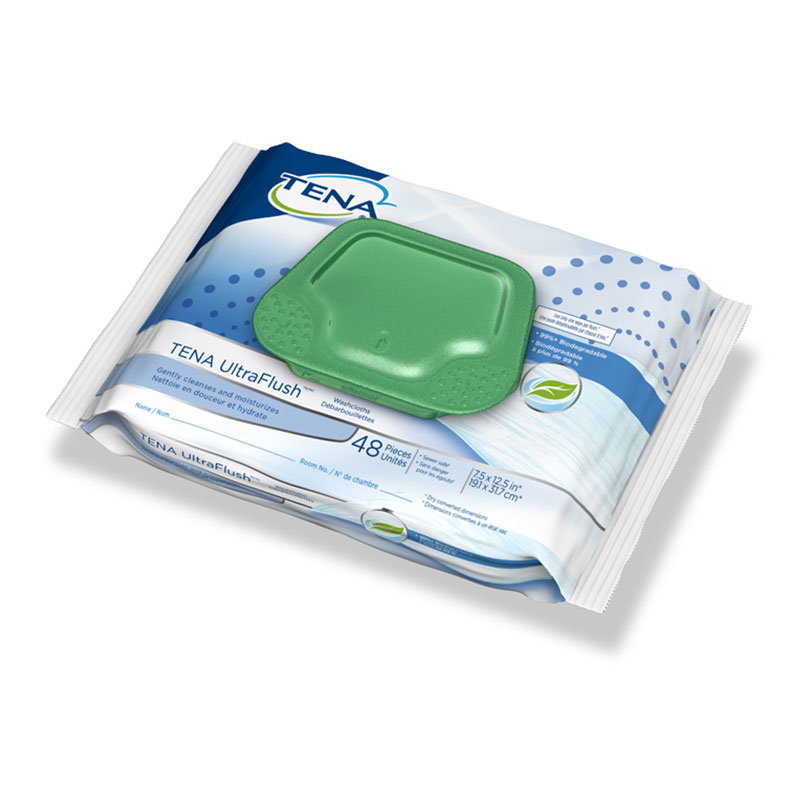 Tena UltraFlush Washcloths 7.5"x12.5" 45/bag is a specialty incontinence product made by Tena. Tena is a leading manufacturer of both men's and women's incontinence items such as briefs, underwear, underpads, cleansers, and more.