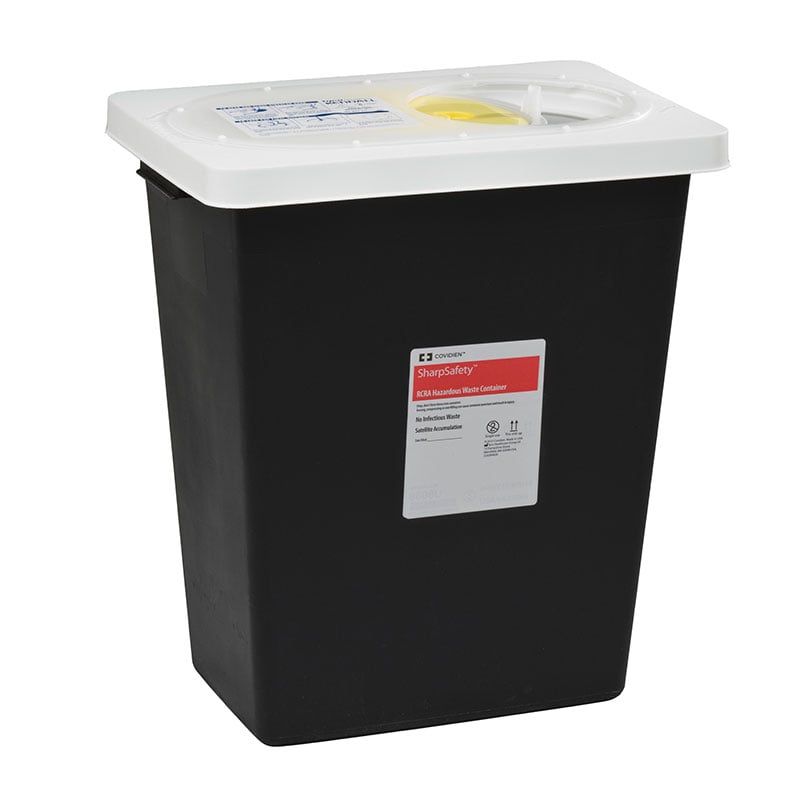 The Kendall RCRA Waste Container SharpSafety 12 Gallon Black 10/CS has been engineered to allow for safe and proper disposal of all sharps. This specialty container meets all safety standards when it comes to the storage and disposal of used and contaminated needles. Please check with your city/county to see how they want these containers disposed of.