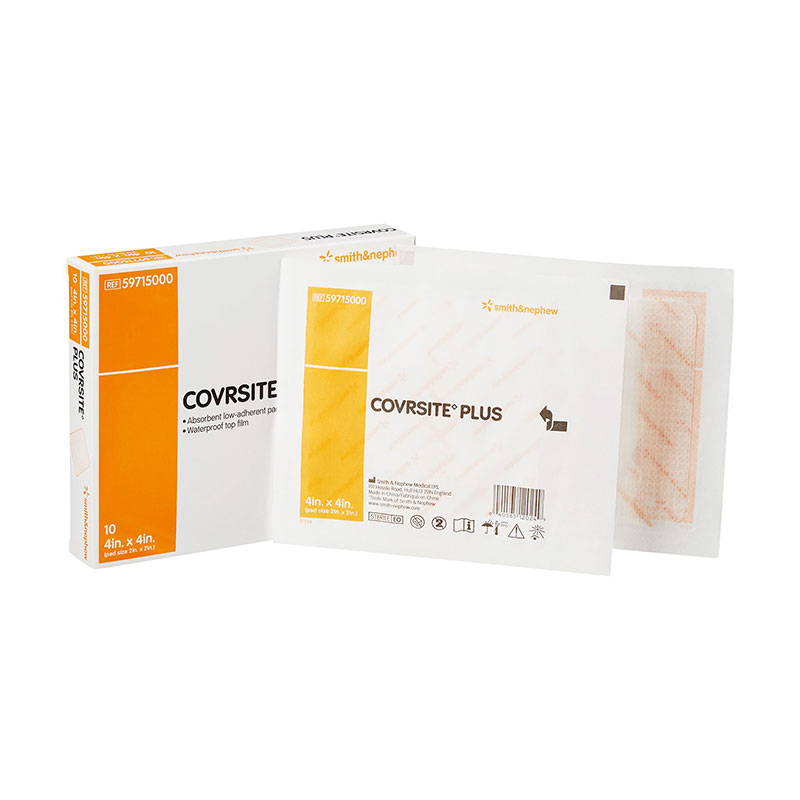 You are viewing the Smith and Nephew CovRSite Plus Composite Dressing (4" X 4"). This is a waterproof version of CovRSite, which is indicated as a primary or secondary dressing in the management of acute or chronic wounds. Comes in a box of 10 dressings. Smith and Nephew, Inc. is a leading manufacturer of wound care supplies.