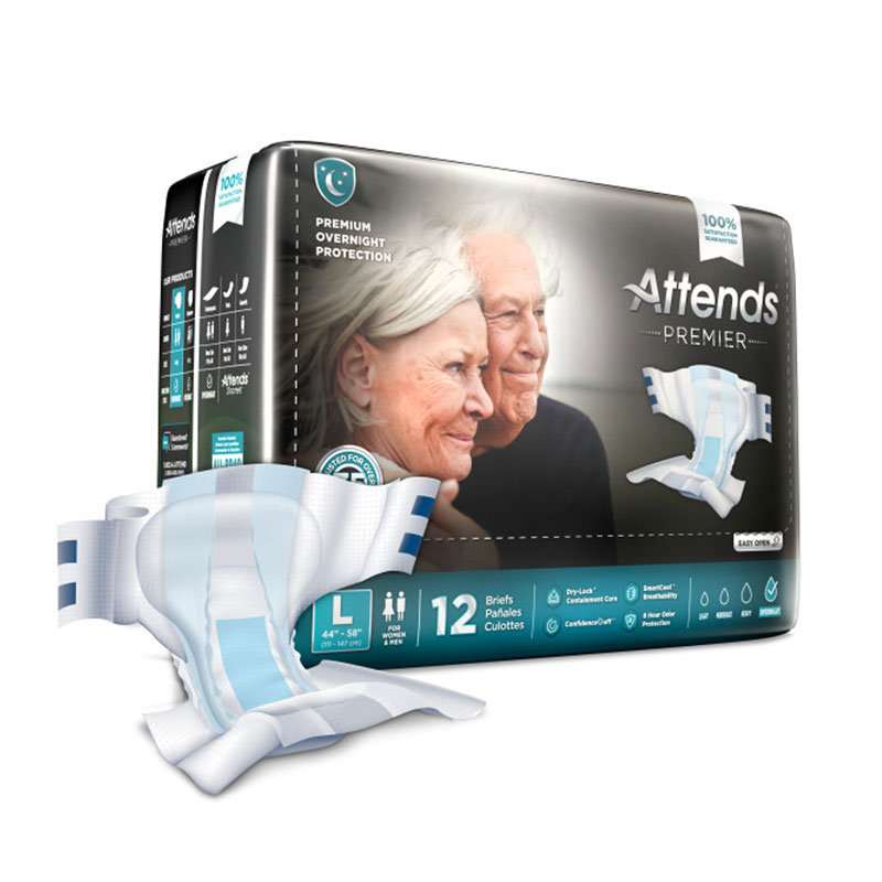 Attends Premier Briefs Large were designed to help you or those you care for manage heavy to severe urinary and/or fecal incontinence. Because Attends uses some of the softest and most absorbent materials available, Attends Premier Briefs will help you feel confident that you or your loved ones are protected during the day or night. The high-rise, full-fit protection and ultra-plush design results in a product that fits comfortably in all the right areas. These are for large size waist between 44 inches to 58 inches.
