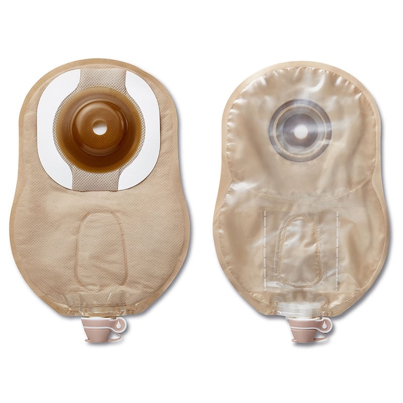 The Hollister Premier 1-Piece Urostomy Pouch has been updated to include a multi-chambered design to lower the pouch profile and facilitate the even collection and distribution of urine. Two new additions to the pouch are a soft, cloth-like tap streamlined to fit comfortably against the body and improve flow control, and a tab for connecting the pouch to a drainage collection device. The corrosion-resistant extended wear skin barrier called the Flextend barrier protects the skin. The pouch is not made with rubber latex and has belt tabs and tape borders for additional security.