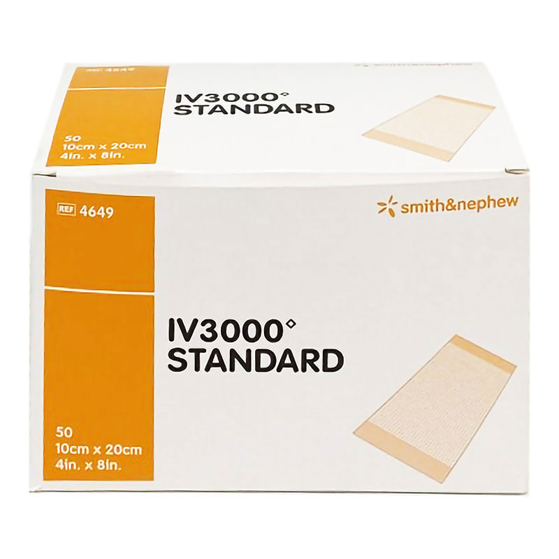 Smith and Nephew Opsite IV3000 is patented reactic film which is three to eight times more permeable to water vapor than standard film dressings. This is 4" x 8" - Sold By Box 50.