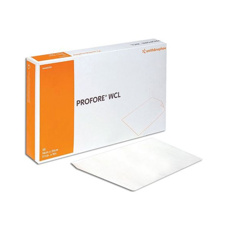 The PROFORE Wound Contact Layer by Smith and Nephew is made of knitted viscose rayon. As a non-adherent interface, it acts as a barrier between the absorbent dressing and granulating wound surface. The dressing can be used with PROFORE Lite, PROFORE LF, and PROFORE. It keeps the wound moist, which prevents skin damage on removal.