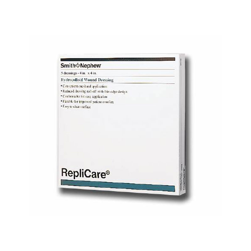 You are viewing Smith and Nephew Replicare Hydrocolloid Dressing. This dressing combines absorbency with all the advantages of a film dressing. A balance of adhesion and elasticity promotes excellent adherence over joints. This is 8" X 8" and sold by box of 5 each.