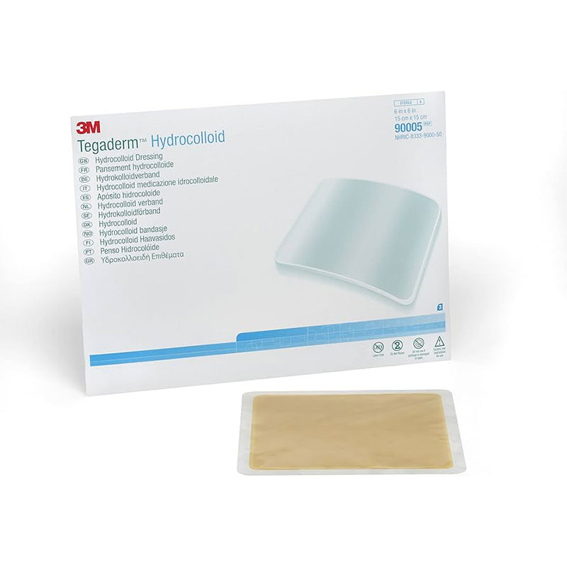 You are viewing the 33M Tegaderm Hydrocolloid Wound Dressing which consists of a hypoallergenic hydrocolloid adhesive with an outer clear adhesive cover film. Ensures an optimal moist wound environment. This is 6in X 6in - Sold By Box 3 by 3M, a leading manufacturer in wound care supplies.