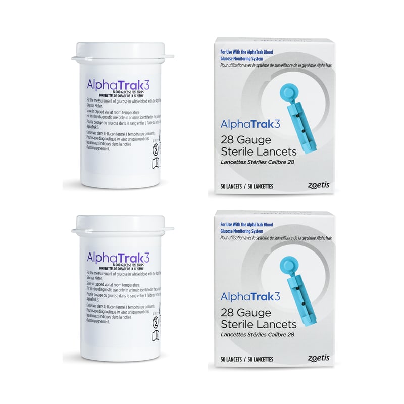 AlphaTRAK 3 Blood Glucose Test Strips (100ct) and AlphaTRAK 3 Lancets (100ct) offer an easy and accurate way to monitor blood sugar levels and manage your pet's diabetes at home.