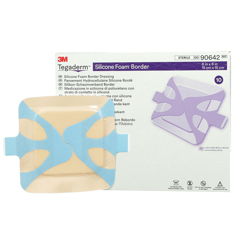 3M Tegaderm Silicone Foam Border Dressing (6x6 inch) is a gentle and secure foam border dressing that easily handles high to low exudating wounds.