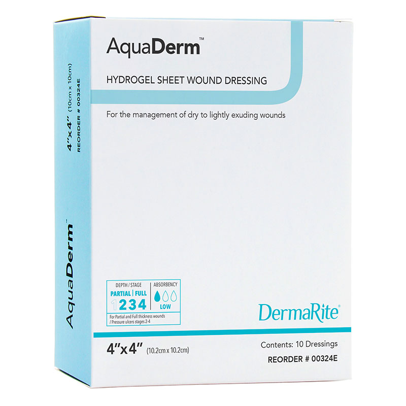 DermaRite AquaDerm Hydrogel Sheet Wound Dressing 4x4 inch Box of 10