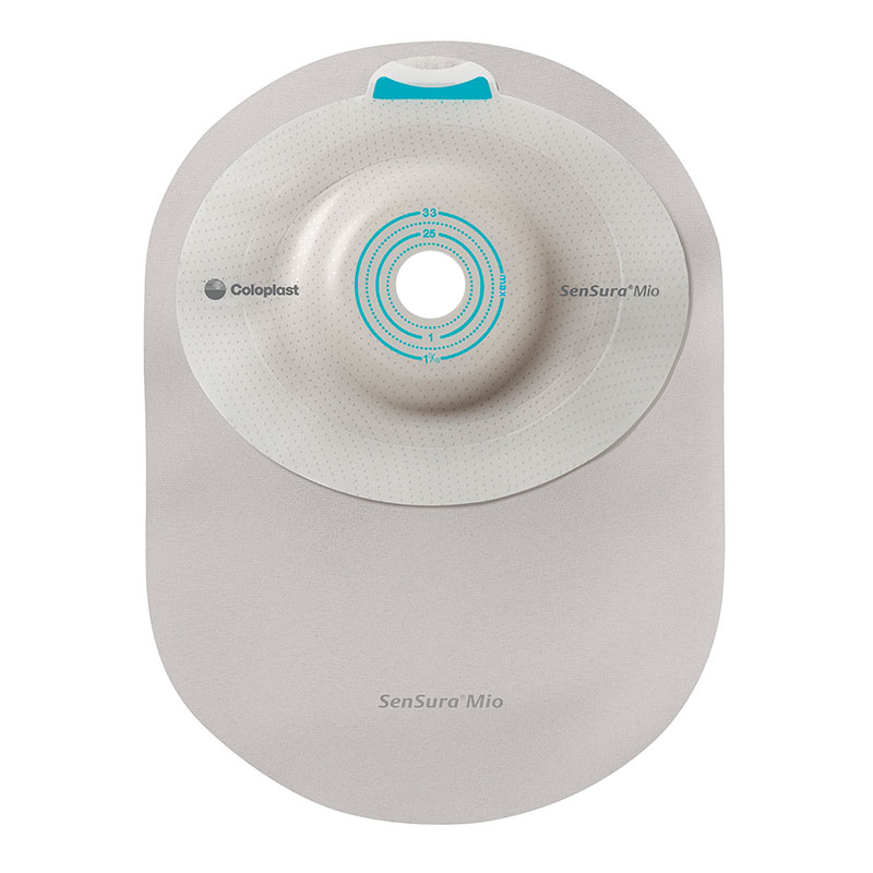 SenSura Mio is a new closed pouch that fits individual body shapes due to elastic adhesive, and stays discreet due to neutral-grey textile material. With SenSura Mio One-Piece Closed Ostomy Pouch, the elastic adhesive is permanently fixed to the pouch. To change the pouch, the whole appliance is removed and replaced at once. SenSura Mio one-piece closed is available in a broad range of flat base plates consisting of various pre-cut or cut-to-fit hole sizes.