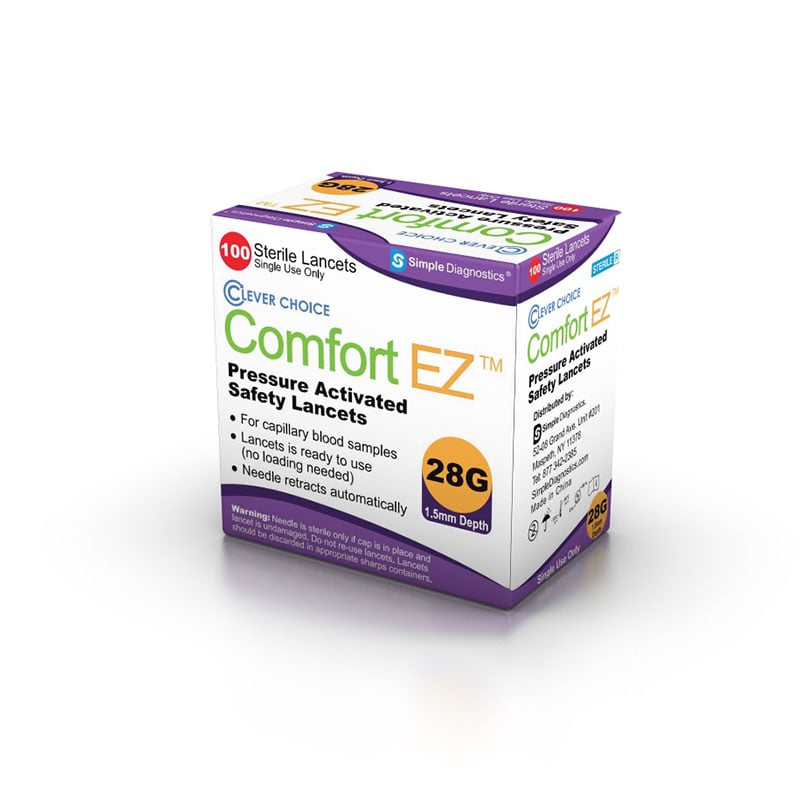 Clever Choice Comfort EZ Pressure Activated Safety Lancets (28G, Box of 100) are designed to be both safe and convenient for the user. The lancet is easy to use out of the box, no loading needed and the needle retracts automatically.