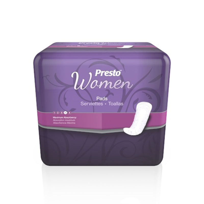 Presto Maximum Absorbency Incontinence Pad features OdorSecure technology which prevents odors before they have a chance to form. The Swift and Soft layer prevents leaks and improves skin dryness by efficiently funneling liquid into the absorbent core.