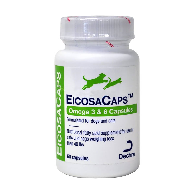 Improve your pet's daily nutrition with Dechra EicosaCaps for pets up to 40 lbs - 60 Capsules. This blend of vitamins and omega oils is specially made to reduce your dog or cat's scratching and provide balanced nutrition. For dogs and cats only.