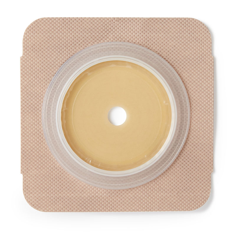 The Genairex Securi-T USA 5x5 inch Standard Wear Wafer Wafer Tan Tape Collar (2.75 inch Flange, Box of 10) features a discreet, low profile and is easy to use.