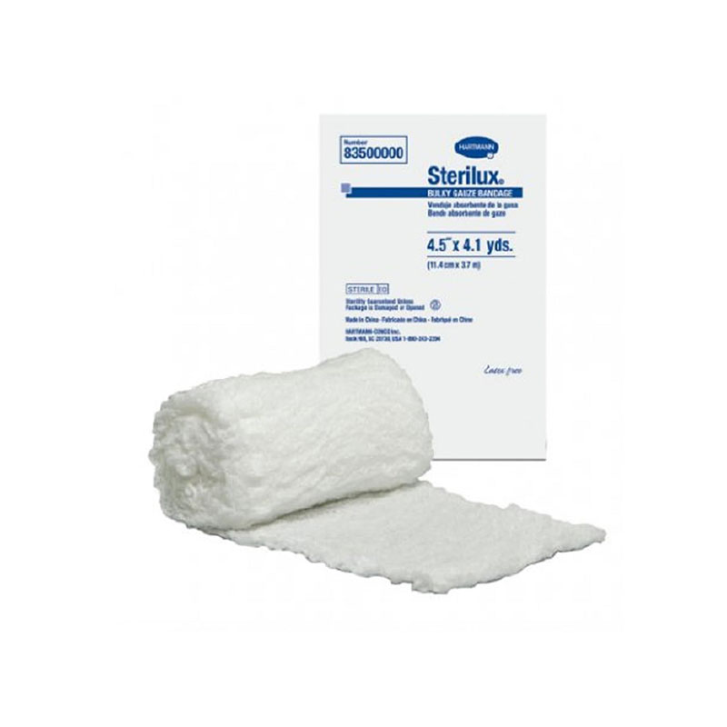 The Hartmann Sterilux Non-Sterile Bulky Gauze Bandage (4.5inx4.1yds) is designed to pad and protect wound area. It provides absorbency and maximum protection.