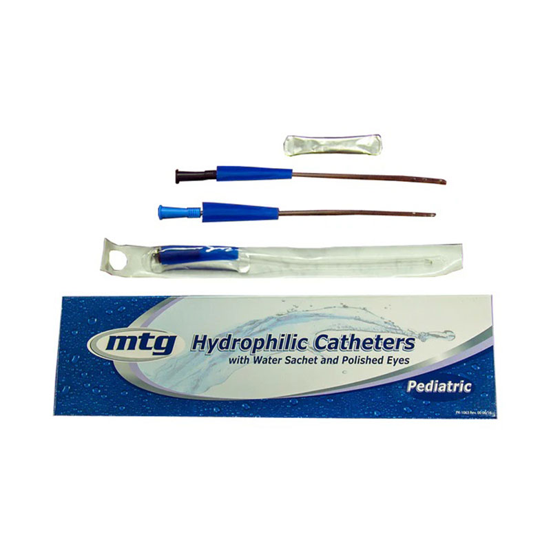 MTG Hydrophilic Coude Tip Catheter 10FR 10 inch Vinyl with Bag and Sleeve Box of 30