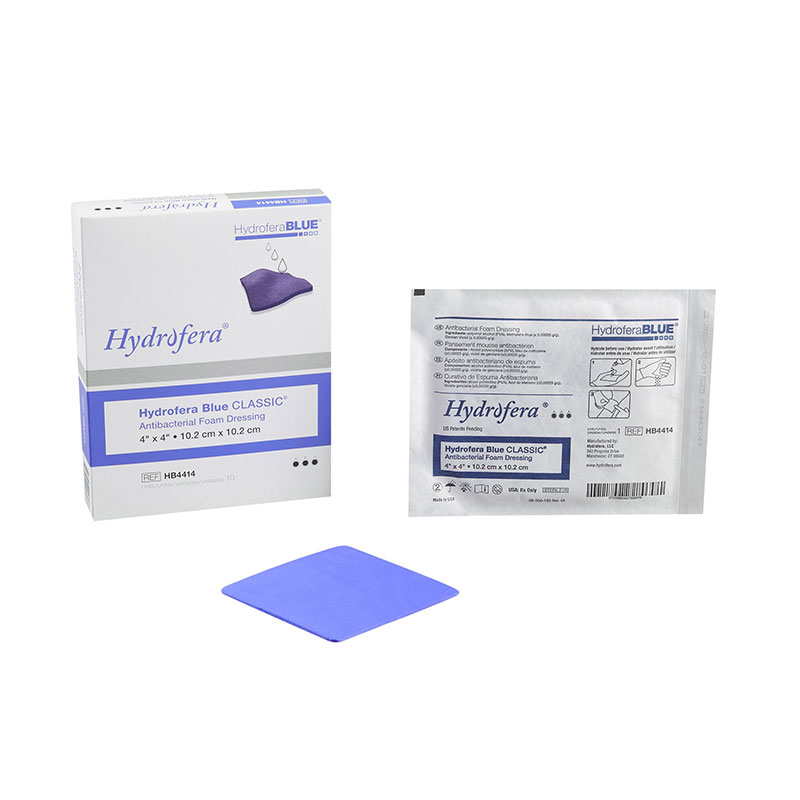 Hydrofera Blue Foam Dressings (4x4 inch) provides broad-spectrum antibacterial protection by two organic pigments: methylene blue and gentian violet.