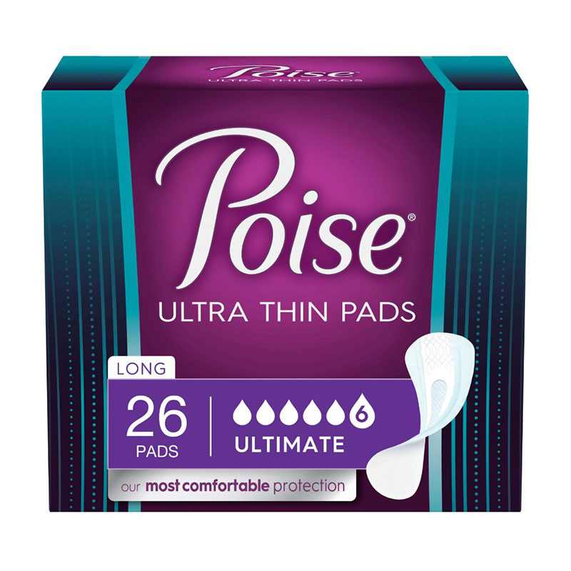 Poise Ultra Thin Ultimate Pads help you get the freshness and comfort you want with Leak-Block sides for outstanding dryness and protection. Poise pads even provide up to 12 hours of protection and are available in multiple absorbencies and lengths, so you can find the right protection for you.