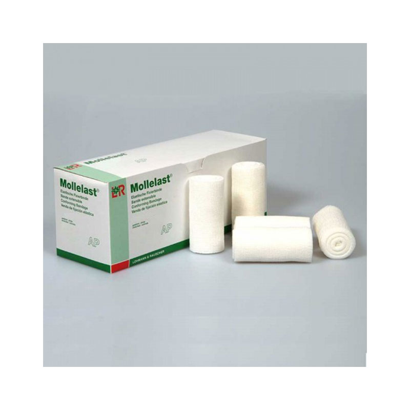 The Lohmann & Rauscher Mollelast Conforming Bandage has elastic properties, but it contains no elastic threading, making it safe for applications where vascular or lymphatic compromise is apparent. This firm grip, high stretch bandage is used for all types of dressing retention.