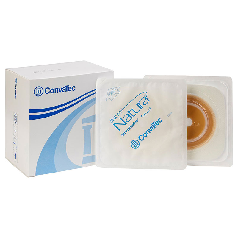 SUR-FIT Natura Stomahesive Flexible Wafers by Convatec are perfect for people with semi-formed to formed stool. This wafer has a unique adhesive that adheres firmly on both dry and moist skin. Its outer protective coating helps keep it in place and provides added security when showering, bathing, and swimming. Stomahesive Wafers are specifically designed for use with SUR-FIT Natura pouches. 1 3/4" (45 mm) flange.