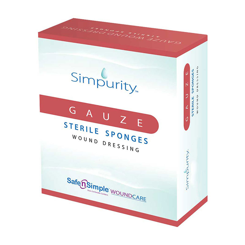 Safe N Simple Simpurity Bordered Gauze Sponges are ideal for general wound cleansing, debriding, minor prepping, covering and packing wounds. It is a non-adherent island dressing with an adhesive border. It absorbs exudate for a cleaner wound bed and the adhesive border protects the wound from outside contaminants.