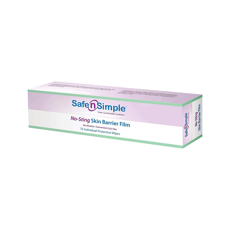 The Safe N Simple Alcohol Free No Sting Skin Barrier Wipes form a barrier to protect the skin from adhesives, friction and body fluids.