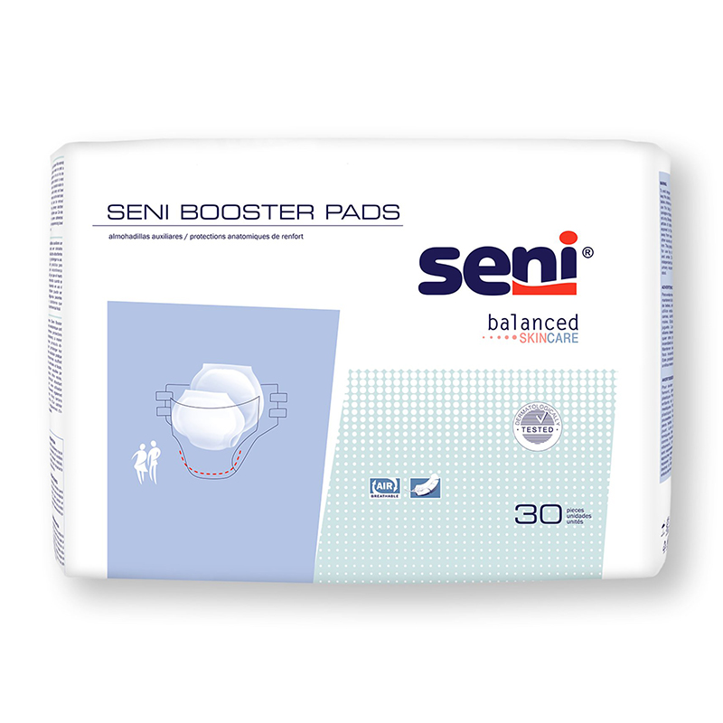 Seni Booster Pads feature anatomically shaped inserts that are perfect as boosters to be put into other absorbent products to extend their use.
