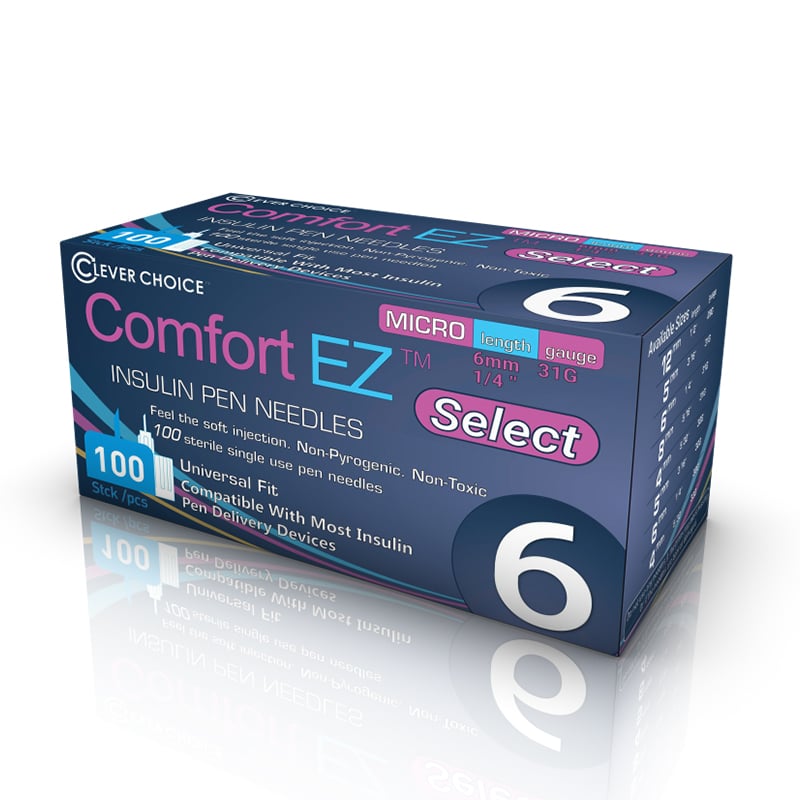 Clever Choice ComfortEZ Select 31G 6mm Pen Needles are silicone-coated with special lubrication for a more comfortable injection.